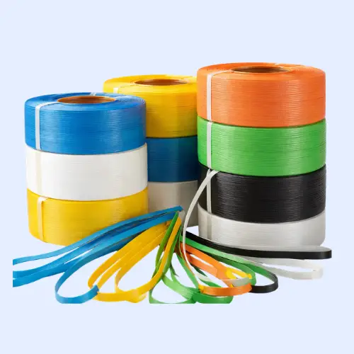 PET straps with high tensile strength, tear resistance, and lightweight elasticity, making them perfect for securely bundling, fastening, and protecting products across diverse packaging applications.